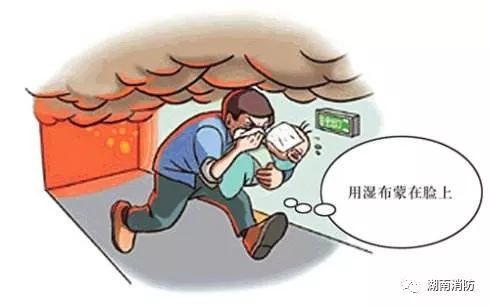 (8)逃生時。盡量采取保護措施,如用濕毛巾捂住口鼻、用濕衣物包裹身體。