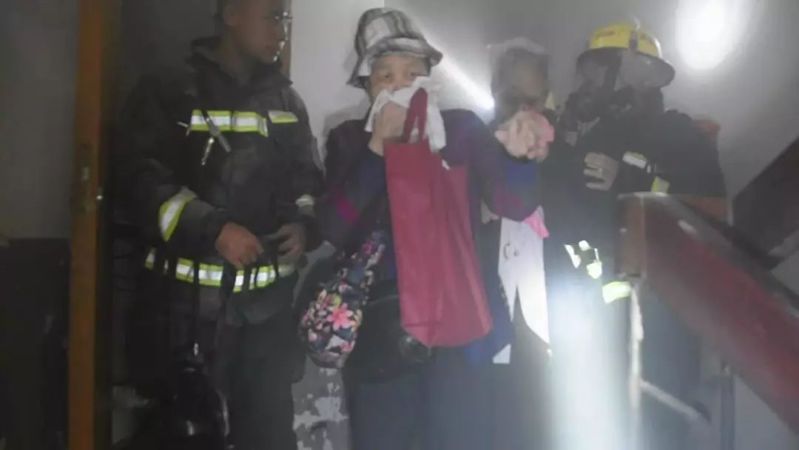其他消防員從19樓疏散出兩名老人