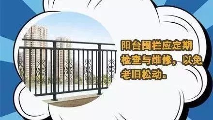 5、陽臺(tái)圍欄應(yīng)定期檢查與維修,以免老舊松動(dòng);