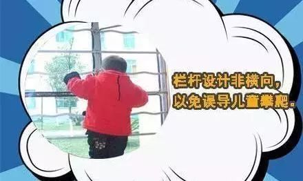 3、欄桿設(shè)計(jì)非橫向,以免誤導(dǎo)兒童攀爬;
