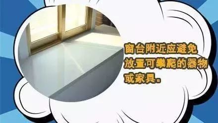 6、窗臺(tái)附近應(yīng)避免放置可攀爬的器物或家具(沙發(fā)、凳子、床、矮柜等)。