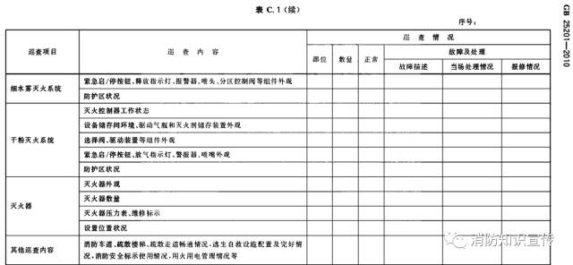 6.2.18 滅火器的巡查內(nèi)容見表C.1中“滅火器”部分。