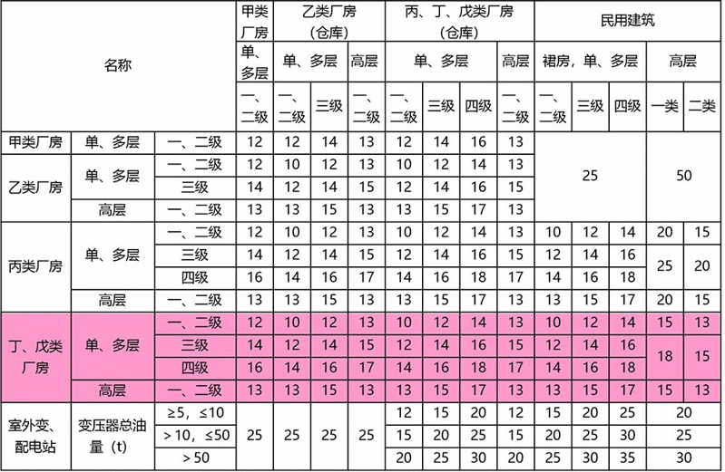 民用建筑中使用的單臺蒸發(fā)量在4t/h以下或額定功率小于或等于2.8MW的燃煤鍋爐房,由于火災(zāi)危險性較小,將這樣的鍋爐房視為民用建筑確定相應(yīng)的防火間距。大于上述規(guī)模時,與工業(yè)用鍋爐基本相當(dāng),要求將鍋爐房按照廠房的有關(guān)防火間距執(zhí)行。至于燃油、燃?xì)忮仩t房,因火災(zāi)危險性較燃煤鍋爐房大,還涉及到燃料儲罐等問題,故也要提高要求,將其視為廠房來確定有關(guān)防火間距。
