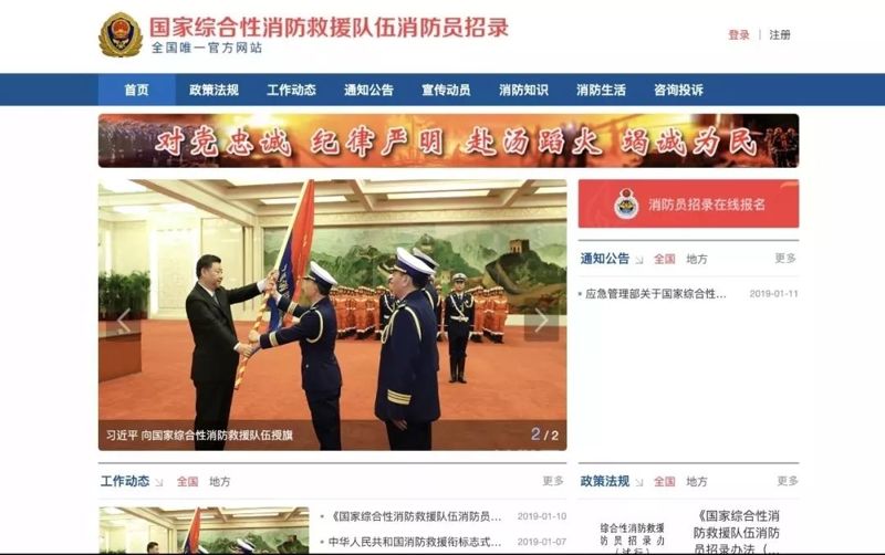 2019年國家綜合性消防救援隊伍消防員招錄已于1月25日開始,全國廣大適齡青年可登錄國家綜合性消防救援隊伍消防員招錄全國唯一官方網(wǎng)站(http://xfyzl.119.gov.cn,以下簡稱:招錄網(wǎng)站)進行消防員招錄在線報名。