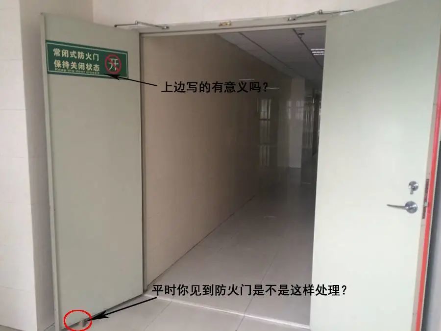 值得注意的是,必須采用專業(yè)的門吸裝置,不能使用掛鉤或門卡將防火門固定,因為發(fā)生火災時,人們在慌亂中是不會把門關上的,這樣就會導致煙火竄入,從而使走道和樓梯間失去安全疏散的作用。