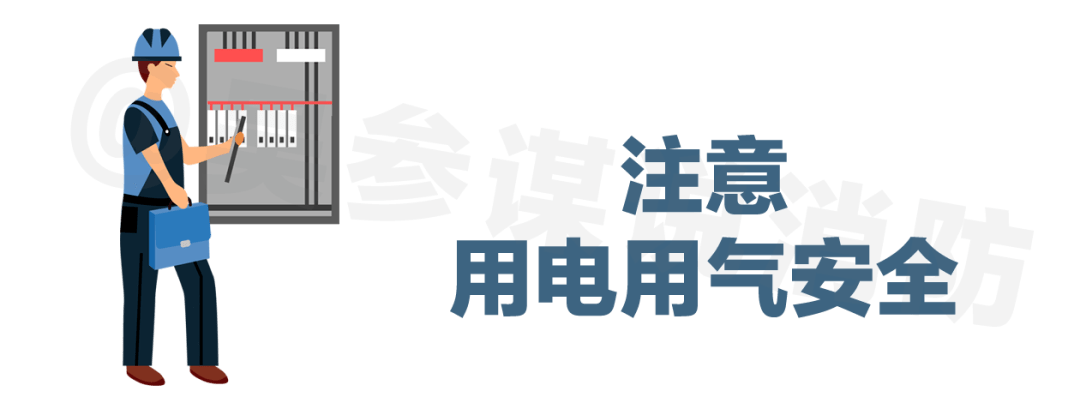 平時(shí)注意用電用氣安全,不亂拉接電線,不超負(fù)荷使用電器,要做到人走電斷,對電氣線路經(jīng)常檢查;同時(shí)要安全使用燃?xì)?,不用時(shí)及時(shí)關(guān)閉。