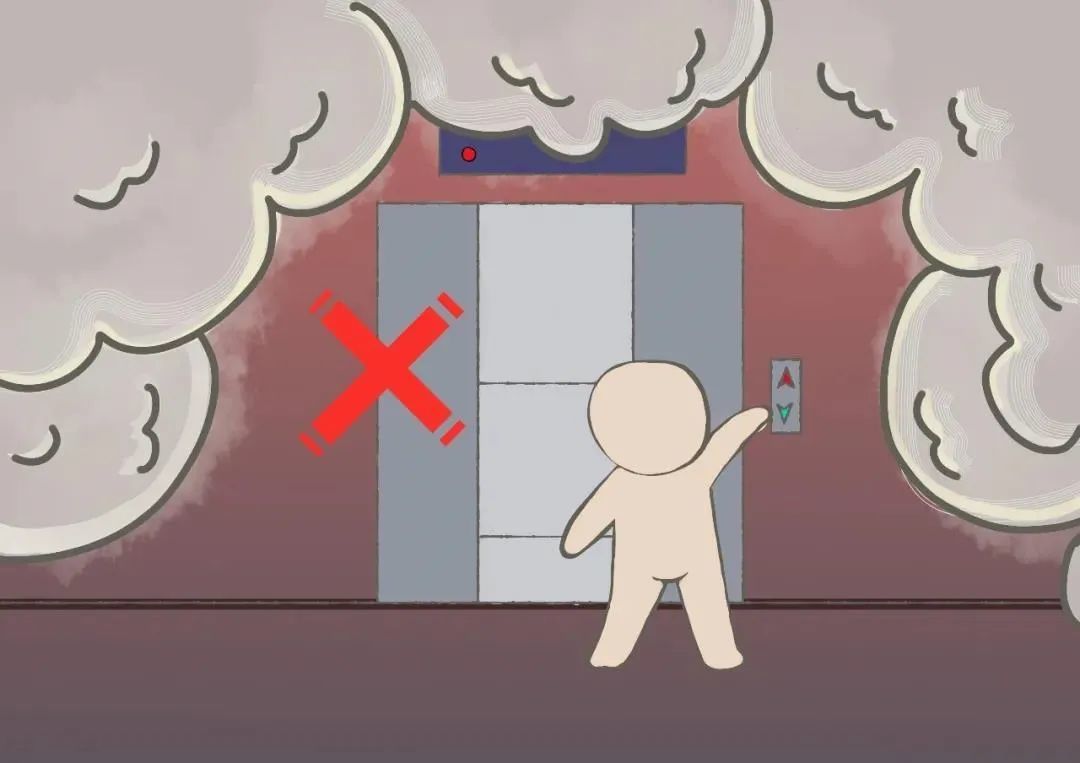 火災發(fā)生時,要選擇較為安全的樓梯通道逃生,千萬不能乘坐普通電梯。