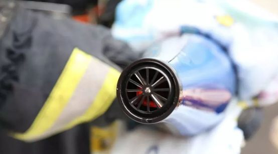 消防隊員準備好了功率為3200W 的吹風機、毛巾、襪子、毛毯等道具,首先進行第一個實驗:用毛巾覆蓋住一個沒有過熱保護裝置的吹風機末端風扇口,還在出風口放了幾片紙屑。打開吹風機,不到一分鐘的時間,吹風機出風口的發(fā)熱線圈開始發(fā)紅,紙屑變成火星“飛”了出來。