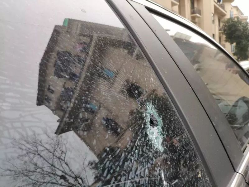 擋風(fēng)玻璃被四射的玻璃碎片擊穿!